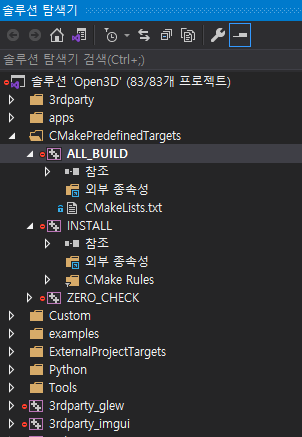 윈도우 운영체제에서 Open3d를 C++로 활용하려면 직접 소스에서 빌드를 해, Visual studio를 위한 솔루션을 만들어야한다.