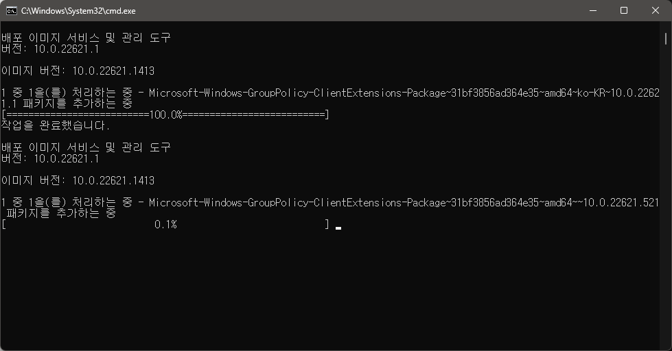 다음과 같이 관리자 권한으로 실행하면, 어떤 창이 뜰 건데 그냥 끝날 때까지 기다리시면 설정이 끝나게 됩니다.