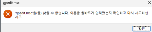 몇몇 사용자는 다음과 같이 gpedit.msc 가 없다는 문구를 본 적이 있을 겁니다.